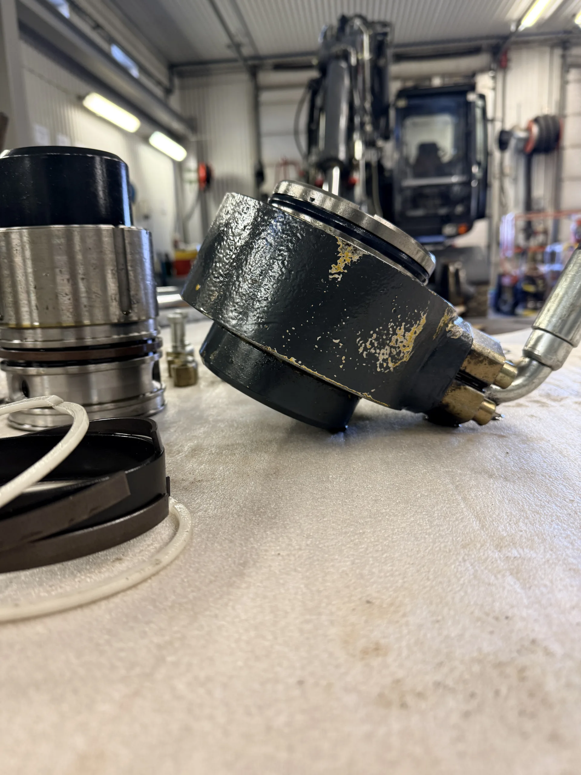 Reparation och underhåll av hjullastare.